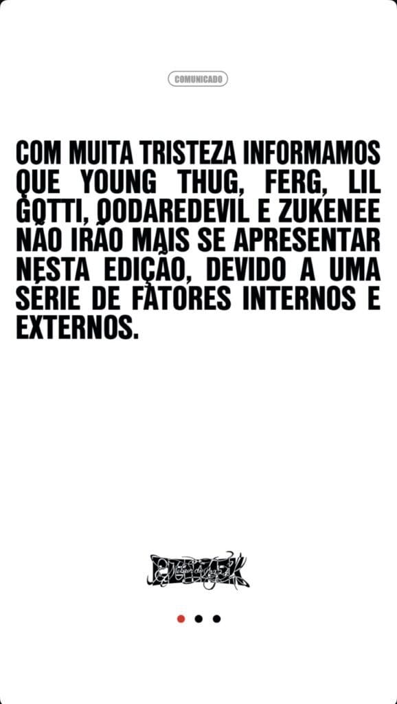 Não foram apenas os grandes nomes globais que desfalcaram o line-up. A curadoria, que prometia valorizar o cenário underground e as novas vertentes do trap, sofreu baixas significativas. Artistas como Lil Gotti, Oodaredevil, Zukenee e Ryu também tiveram suas performances canceladas, criando buracos na programação que a organização não conseguiu preencher à altura.