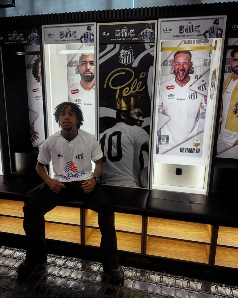 Nascido na Praia Grande e criado com a vivência autêntica do litoral paulista, o rapper de 25 anos nunca escondeu sua paixão pelo time. Essa conexão visceral entre o artista e a Vila Belmiro sempre foi um pilar de sua identidade visual e lírica, aparecendo de forma recorrente em seus clipes e letras que exaltam o estilo de vida santista.